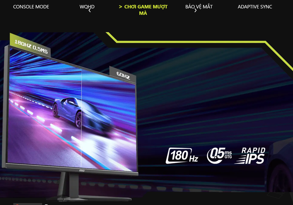 Tấm nền Rapid IPS: Màu sắc trung thực, góc nhìn rộng 178°, đảm bảo hình ảnh sắc nét từ mọi góc độ.