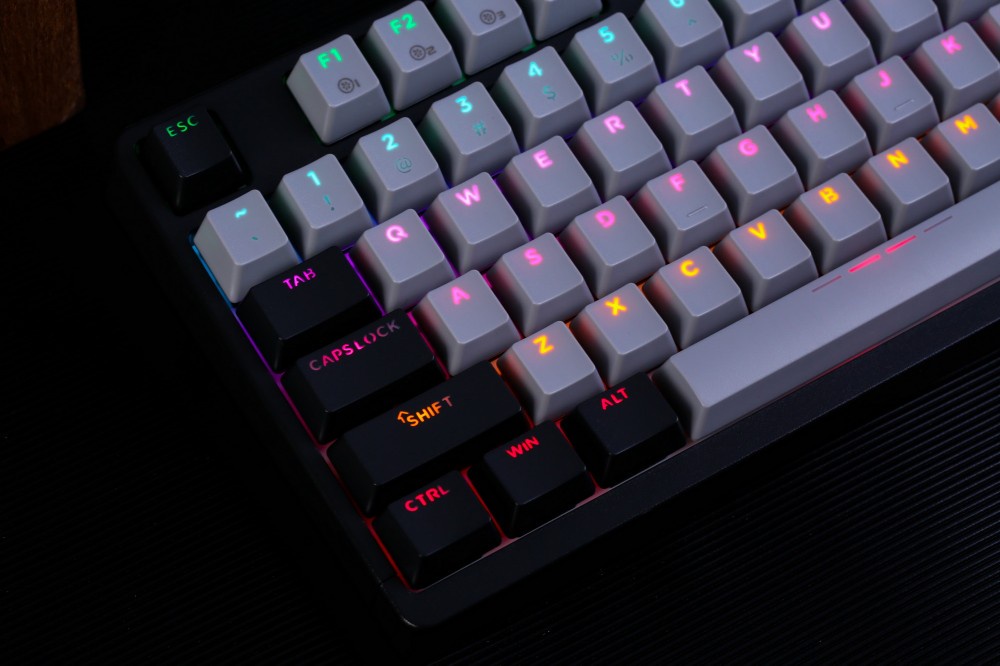 Đặc biệt, Keycaps làm từ nhựa PBT Doubleshot bền bỉ, không bị bóng sau thời gian dài sử dụng. Với profile OEM phổ biến, người dùng sẽ nhanh chóng làm quen ngay từ lần đầu trải nghiệm. Hệ thống LED RGB tích hợp dưới mỗi phím, cho phép chuyển đổi hiệu ứng ánh sáng bằng các tổ hợp phím vừa tiện lợi vừa nhanh chóng.