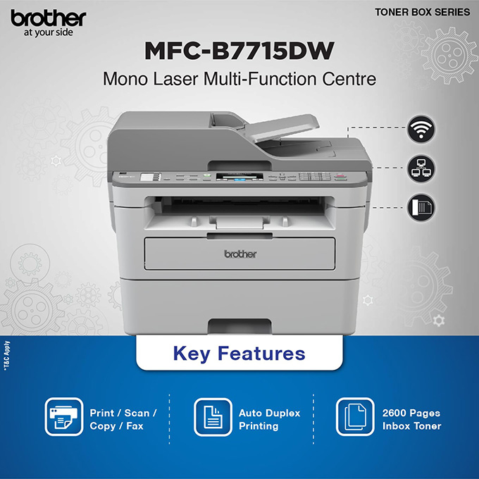 Máy In Laser Đen Trắng Đa Năng Brother MFC-B7715DW (Fax, In Hai Mặt, Scan, Copy, ADF, A4, USB, LAN, WIFI)